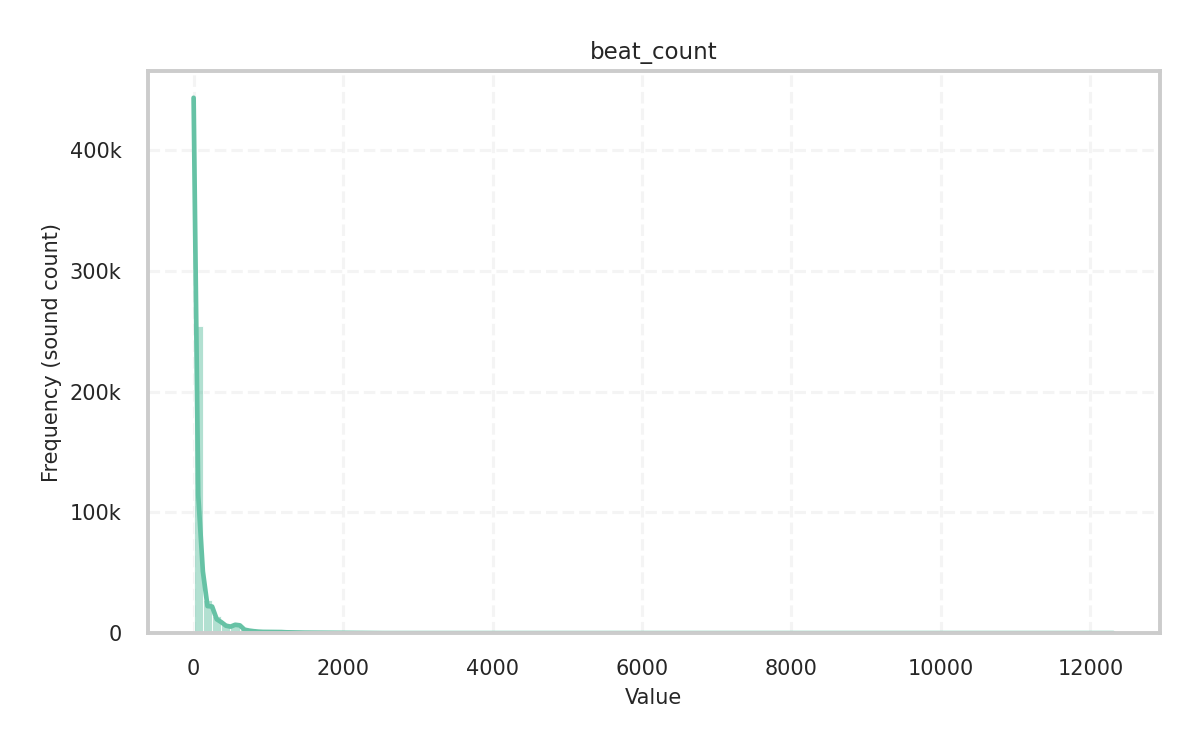 Description: Number of beats in the audio signal, derived from the total detected beat positions and expresses a measure of rhythmic density or tempo-related activity.