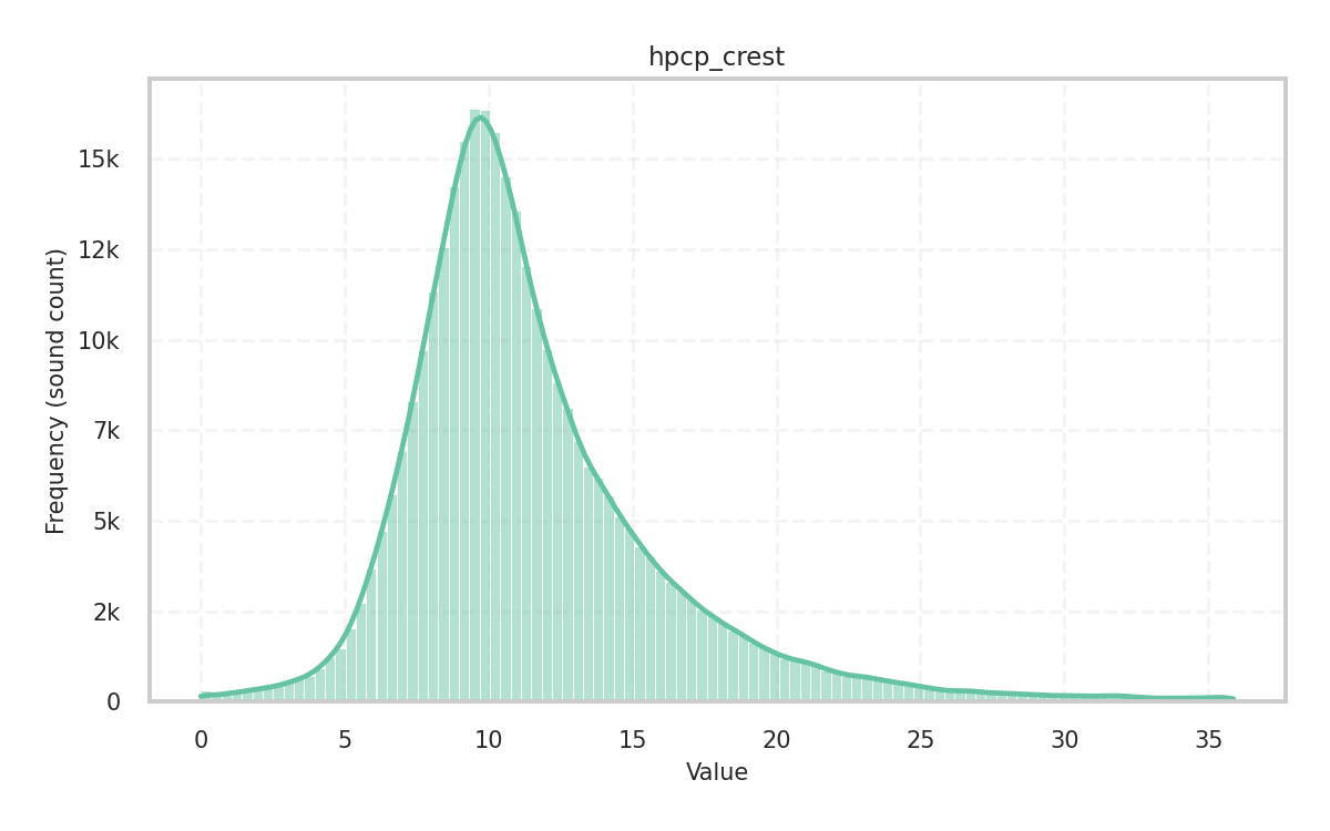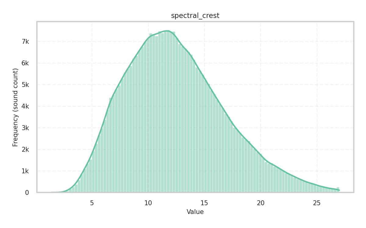 Description: Dominance of the strongest spectral peak (crest) compared to the rest, computed as the ratio between the maximum and mean spectral magnitudes.