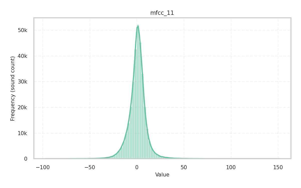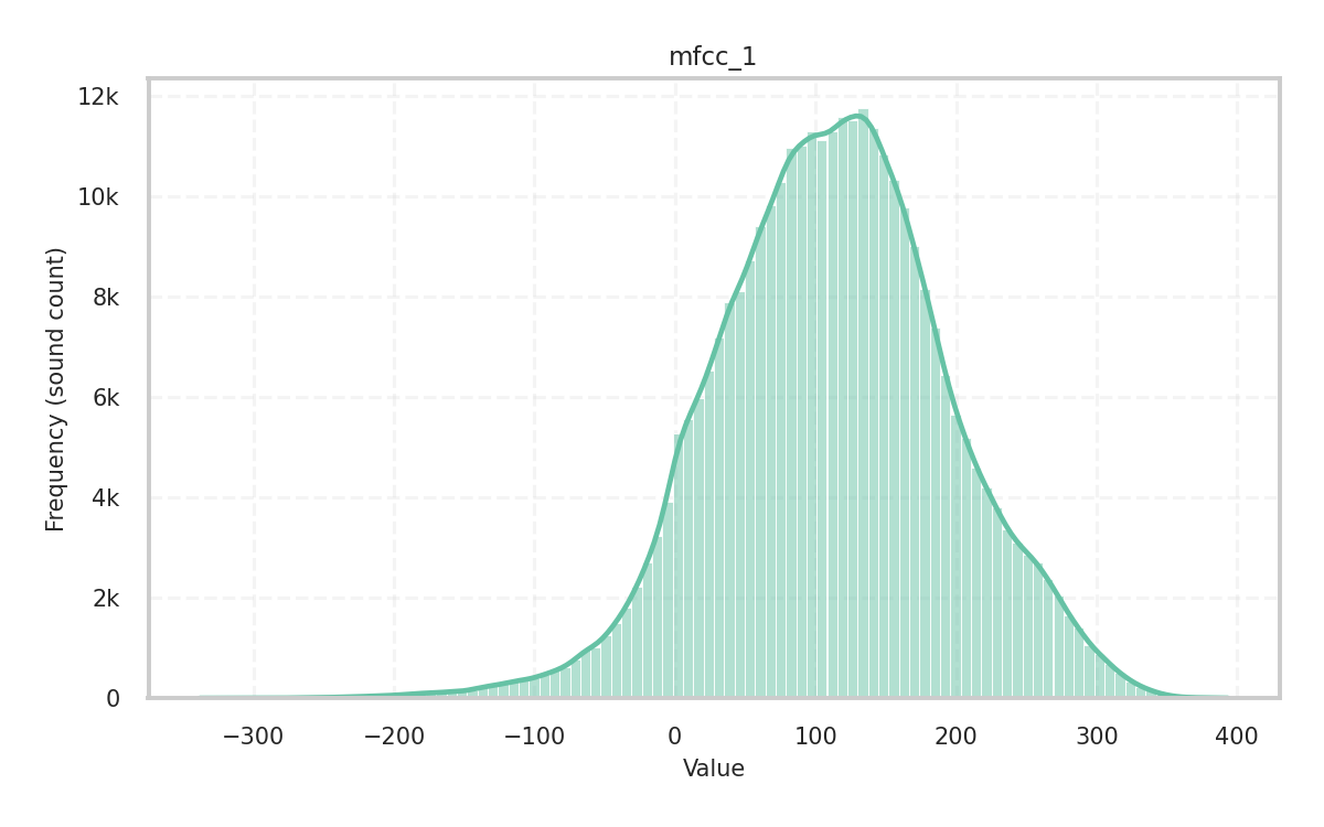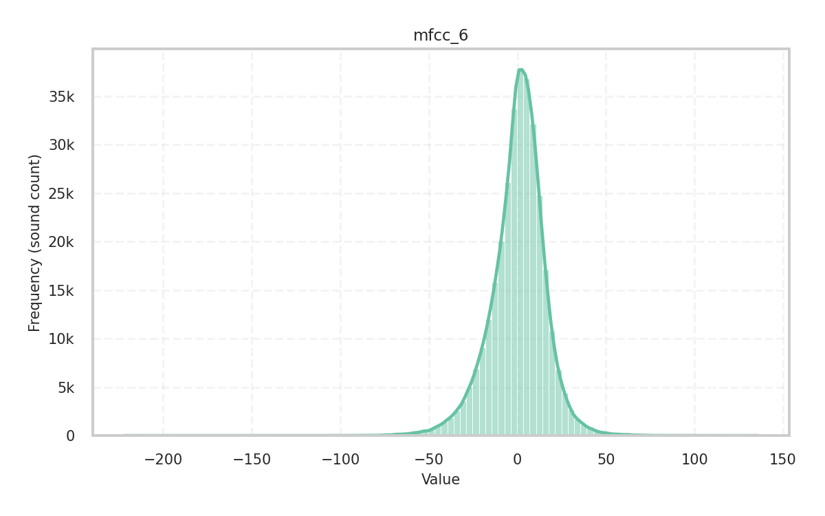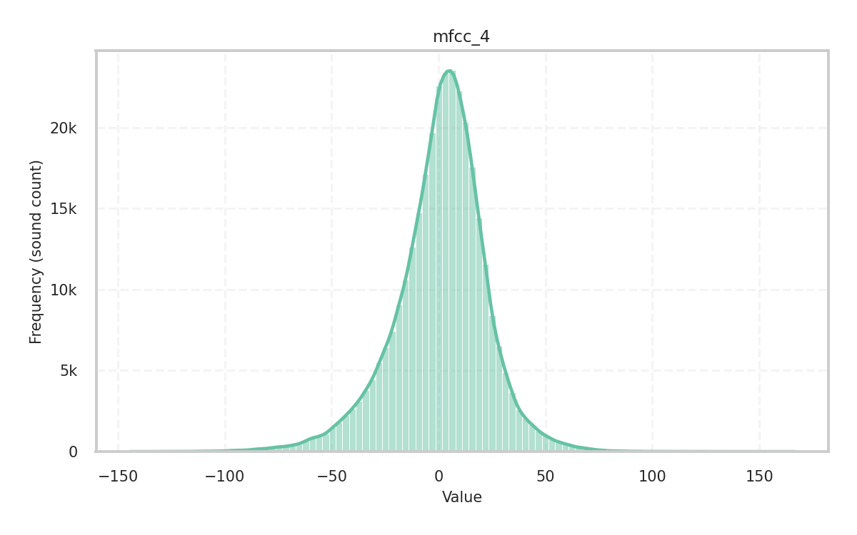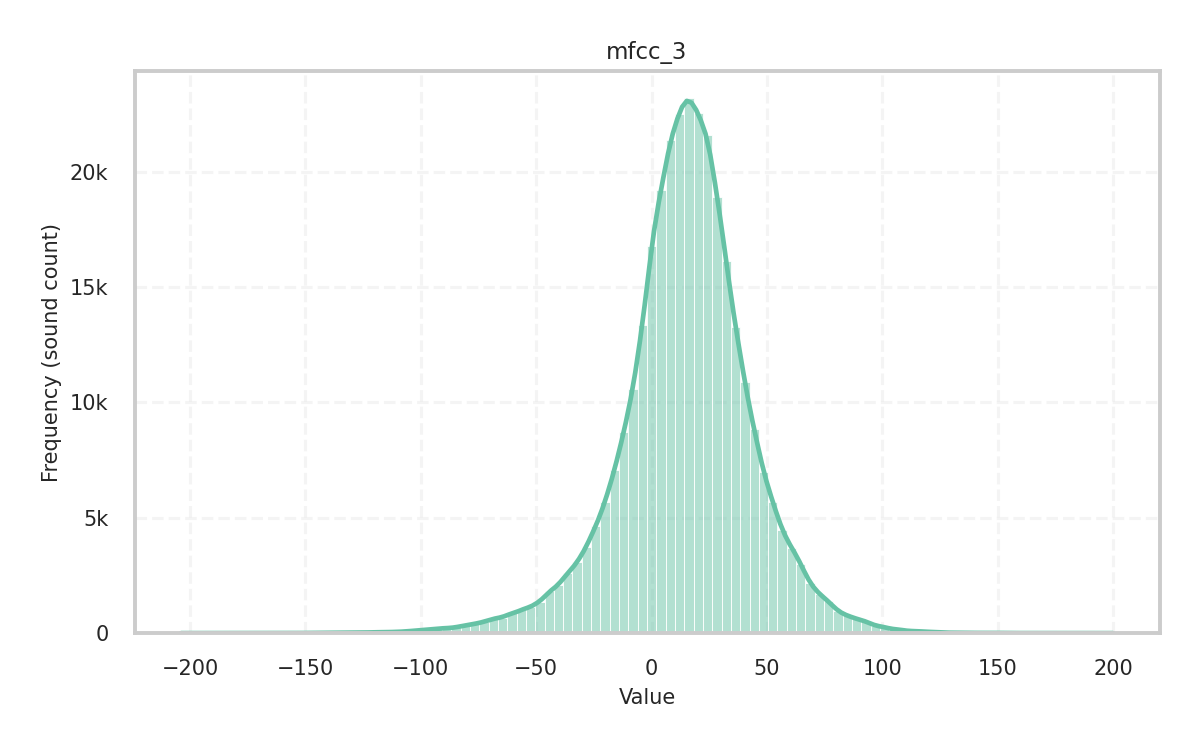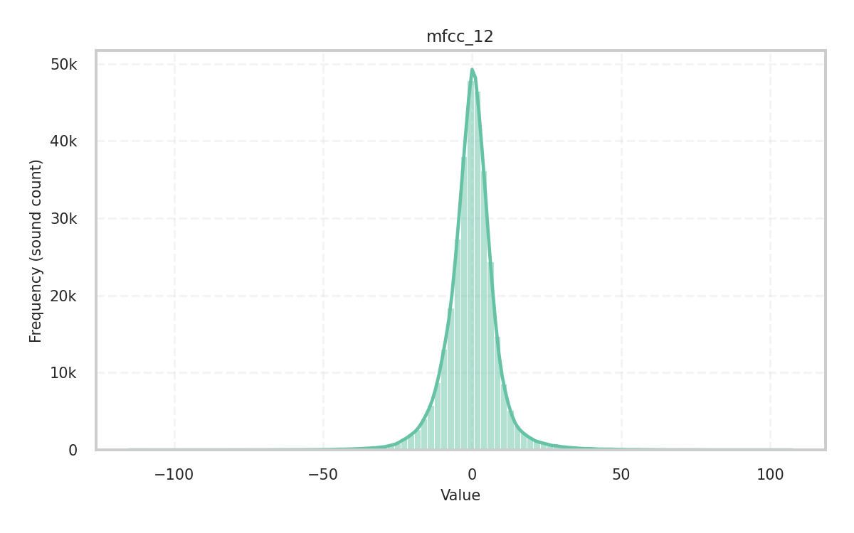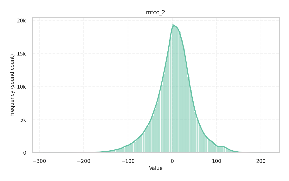 Description: Skewness of the audio signal in the time domain given its central moments. It measures how the amplitude values of the signal are dispersed around the mean and is a key indicator of the distribution’s shape.