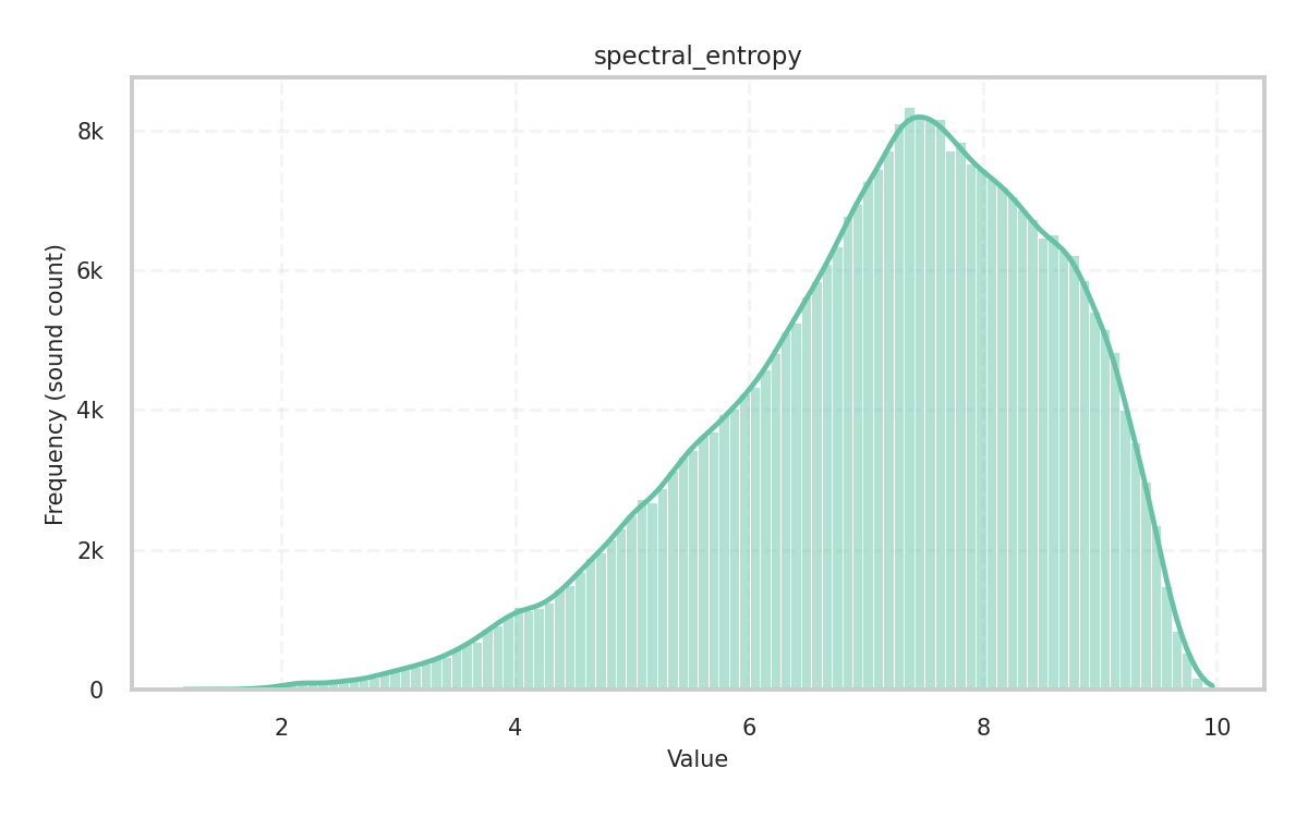 Description: Shannon entropy in the frequency domain of the audio signal, measuring the unpredictability in the spectrum.