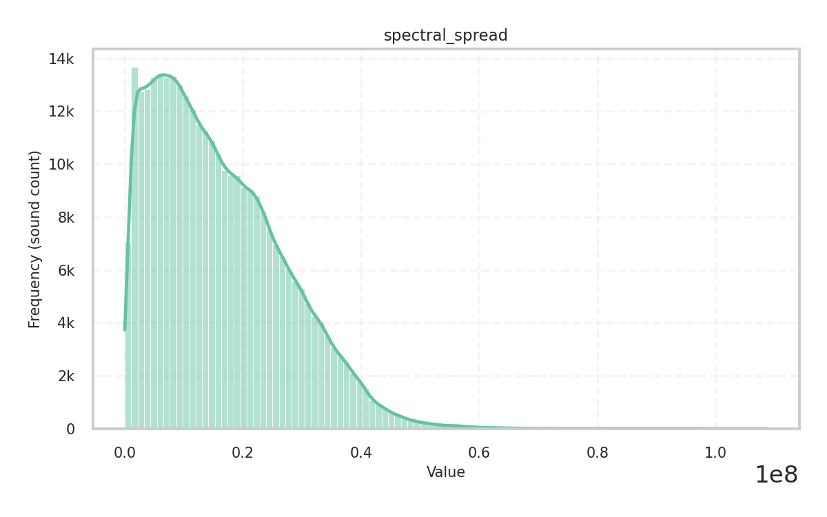 Description: Spread (variance) of the audio signal in the time domain given its central moments. It measures how the amplitude values of the signal are dispersed around the mean and is a key indicator of the distribution’s shape.