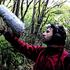 Walking on the ice in a cold morning.
